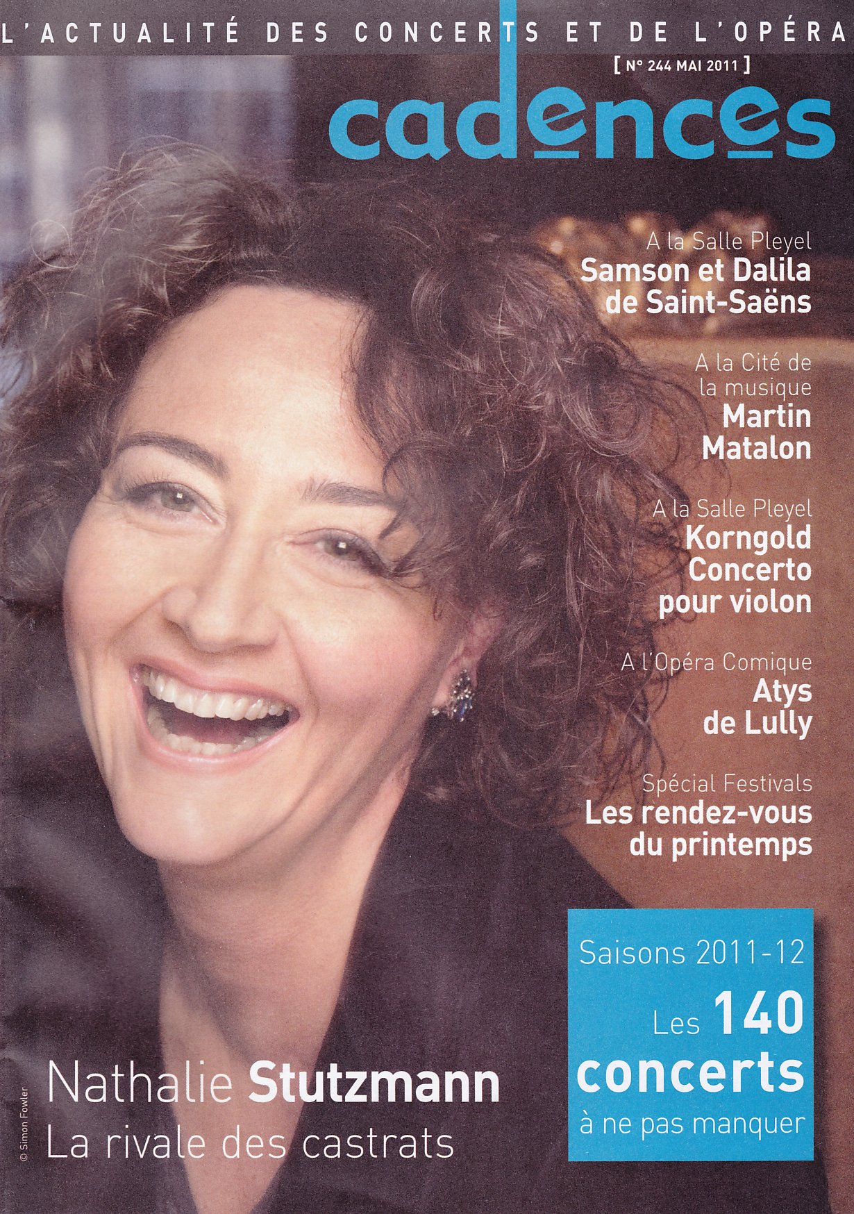 Comme la semaine dernière, un heureux hasard veut que le magasine Cadences mette en couverture l’artiste que j’allais applaudir: