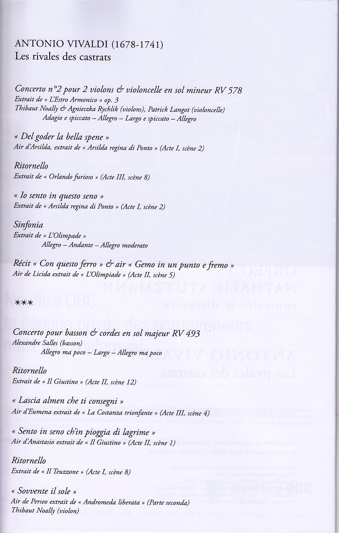 Une fois de plus, j’étais particulièrement enchantée par le concert. Vivaldi est, depuis très longtemps, mon musicien préféré N°2 (le premier étant Beethoven) et ce soir-là, Vivaldi était joué comme je l’aime, avec rythme, mais sans frénésie. (je vous renvoie à la vidéo). Si vous n’avez pas l’occasion de pouvoir écouter en concert NS et Orfeo 55, offrez-vous au moins l’album Prima Donna !