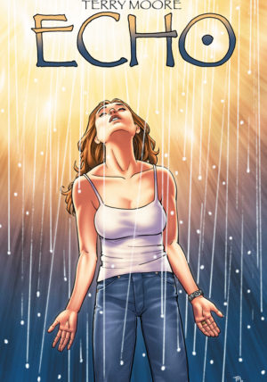 Une fois achevé SiP, que pouvait faire Terry Moore ? Il décida de changer de genre et de regarder vers la science-fiction avec Echo publié entre 2008 et 2011. Nous suivons Julie, une américaine moyenne, photographe de profession. Alors qu’elle prends des clichés dans le désert, elle assiste à une explosion dans le ciel et se retrouve bientôt recouverte en partie d’une substance d’apparence métallique dont elle ne peut se défaire. L’explosion, c’était une expérience sur un matériel militaire qui a échoué. Et quand ce laboratoire découvre qu’il y a eu un témoin de l’accident dans le désert, il lance quelqu’un à la poursuite de Julie.