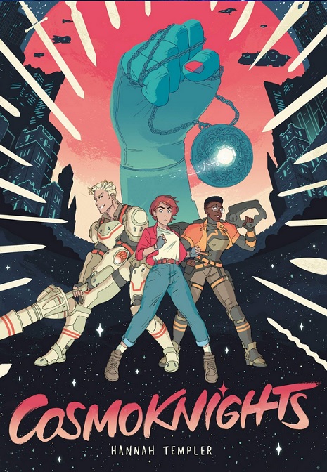 Un autre titre, cette fois en comics, Cosmoknights de Hannah Templer publié chez Top Shelf Productions en anglais (19,70 € en version papier, 8,11 € en version électronique) et chez Bliss Comics Editions en français (25 € en version papier uniquement). Seul le premier tome est paru en français, mais le second est attendu pour cet automne. Par contre, ils existent tous les deux en anglais y compris en version électronique. Cosmoknights se situe dans un avenir lointain où, d’un côté, les progrès technologiques ont permis de prendre possession de tas de planètes lointaines et les liaisons interstellaires sont fréquentes et régulières, mais de l’autre l’ensemble est régi par un système féodal. Chaque planète a un seigneur à sa tête (duc, baron marquis….) et quand celui-ci a une fille d’âge à se marier, il organise une joute à l’issue de laquelle le vainqueur remporte la main de la belle. Sauf que si ça se passait ainsi au début du système, maintenant, les riches familles intéressées ont recours à des champions se battant pour leur patron. Malgré ce résumé un peu rétrograde, c’est un comics très féministe et queer. Vous pouvez vous faire une idée en allant sur le site d’Hannah Templer puisque tout a commencé sur le net. Pour ma part, j’aime le style graphique, j’aime les couleurs, j’aime l’histoire: J’étais arrivée à la fin du premier tome sans m’en rendre compte.